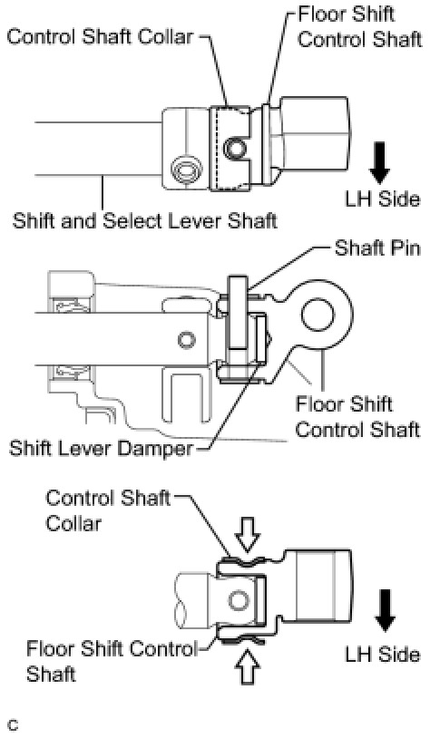(b) Install the shift lever damper and floor shift control shaft to the shift and select lever shaft.