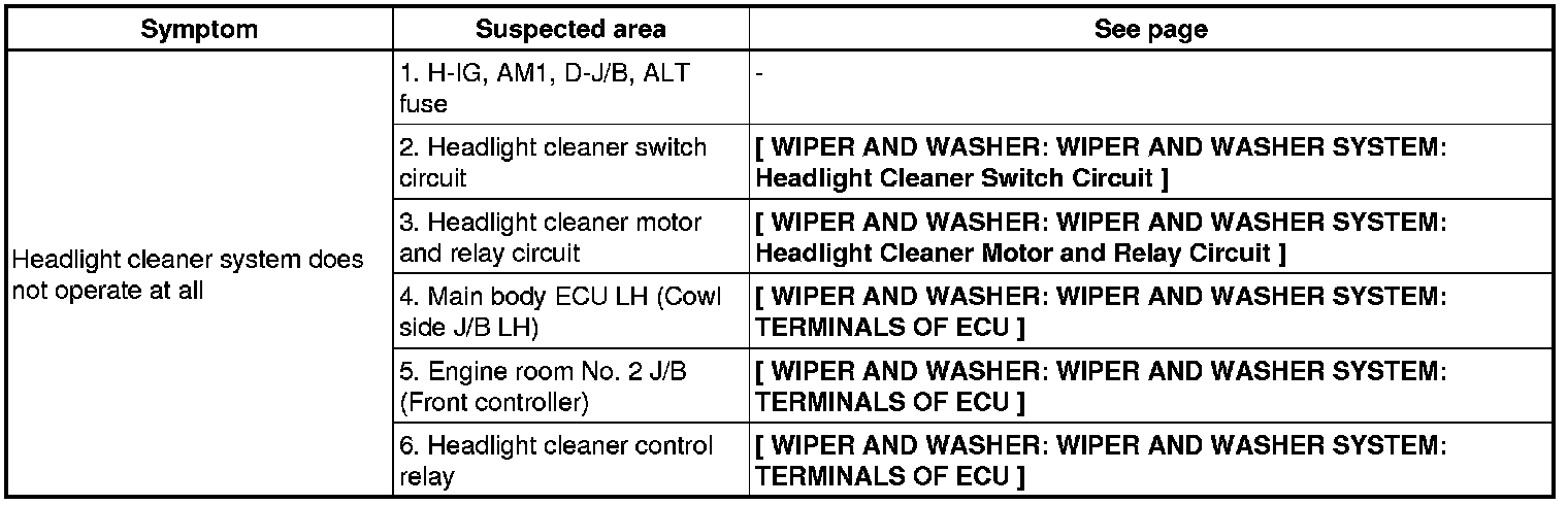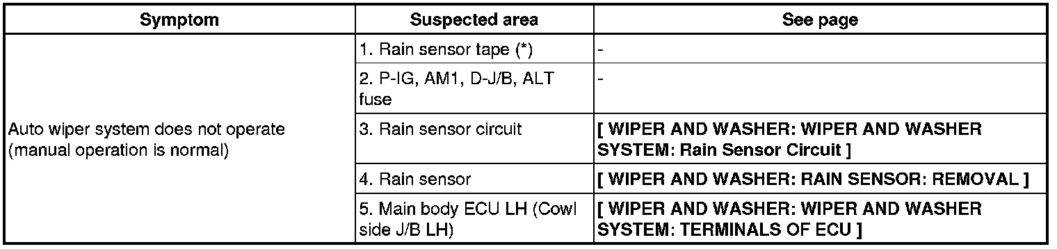 WIPER AND WASHER: WIPER AND WASHER SYSTEM: PROBLEM SYMPTOMS TABLE