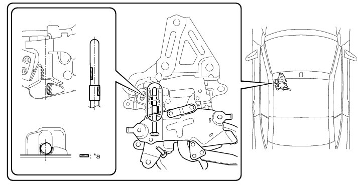 * If the removable roof panel stopper LH is loosened for an adjustment, temporarily tighten it after the adjustment is completed.