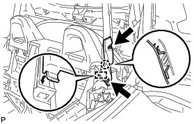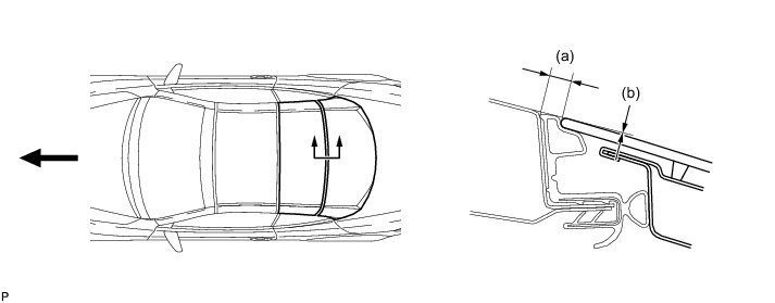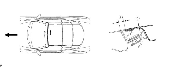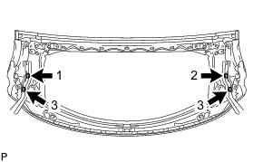 (a) Check that the removable roof panel stopper LH and back window lock assembly contact each other at the 3 points shown in the illustration.