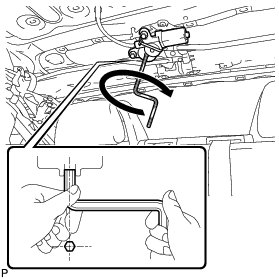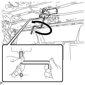 (a) Using a 5 mm hexagon wrench, turn the sliding roof drive gear sub-assembly counterclockwise to release the lock of the rear slide roof panel sub-assembly.