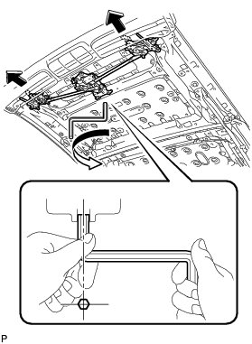 (b) If necessary, use a 5 mm hexagon wrench to turn the sliding roof drive gear sub-assembly counterclockwise to release the locks.
