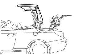 Slowly close the roof panels while checking that the guide pins on the roof panel and the sockets on the pillars are aligned.