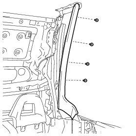 (a) Install the rear roof side rail garnish LH with the 4 screws.