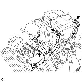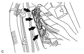 (b) Remove the 2 clamps to disconnect the wire harness from the bracket.