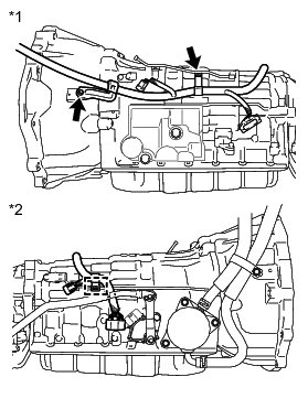 (b) Remove the 2 bolts and separate the wire harness clamps from the automatic transmission assembly.