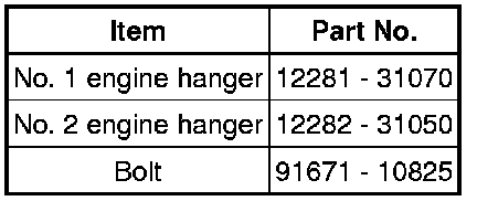 (f) Install the No. 1 and No. 2 engine hangers with the 4 bolts.
