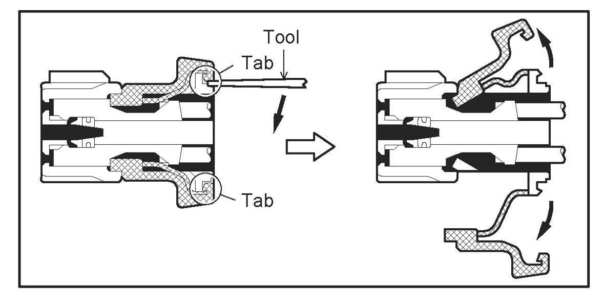 3. DISENGAGE THE SECONDARY LOCKING DEVICE OR TERMINAL RETAINER.
