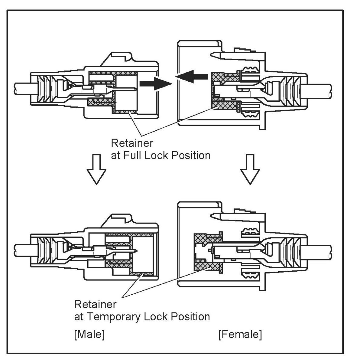 3. Insert the terminal with terminal retainer in the temporary lock position.