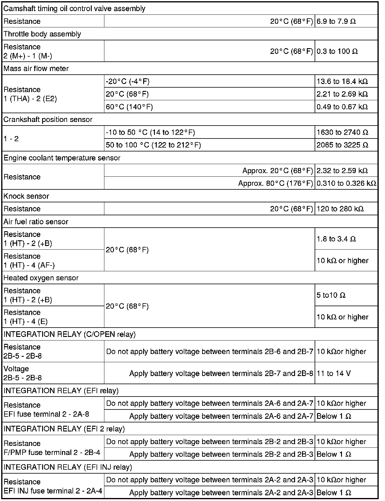 SPECIFICATIONS: 4GR-FSE ENGINE CONTROL: SERVICE DATA