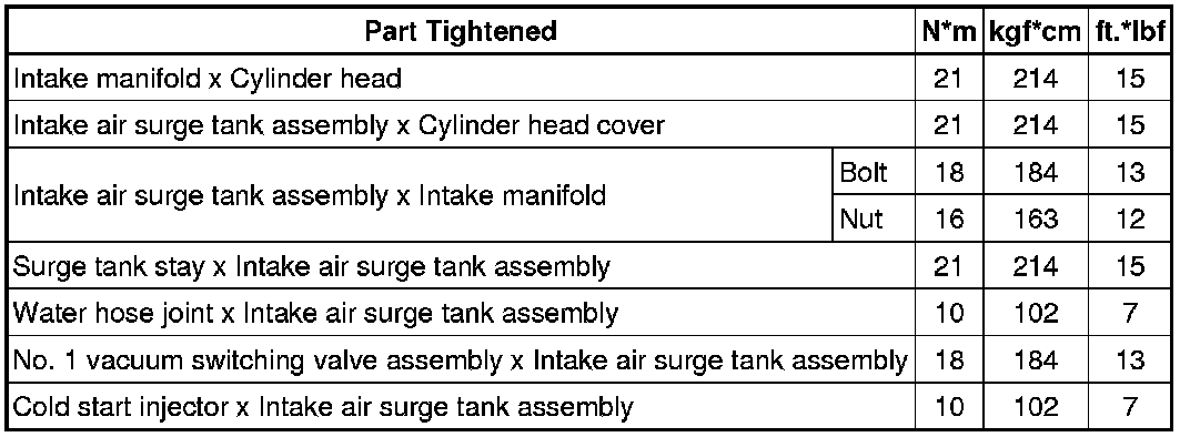 SPECIFICATIONS: 4GR-FSE INTAKE / EXHAUST: TORQUE SPECIFICATIONS