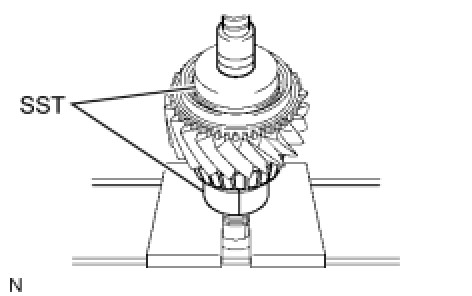 (a) Using SST and a press, install a new output shaft front bearing onto the output shaft.