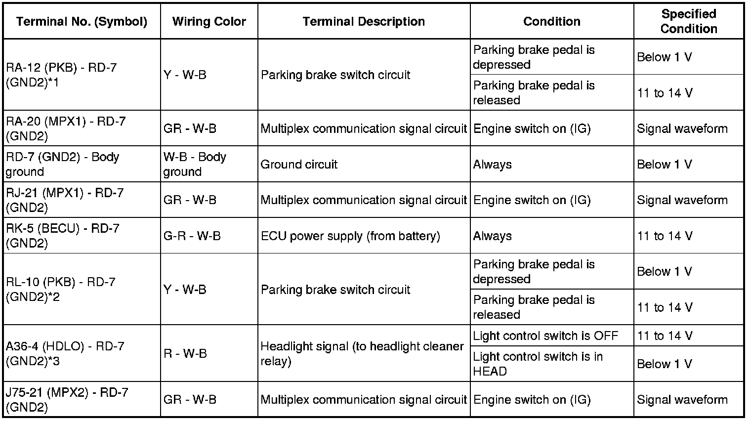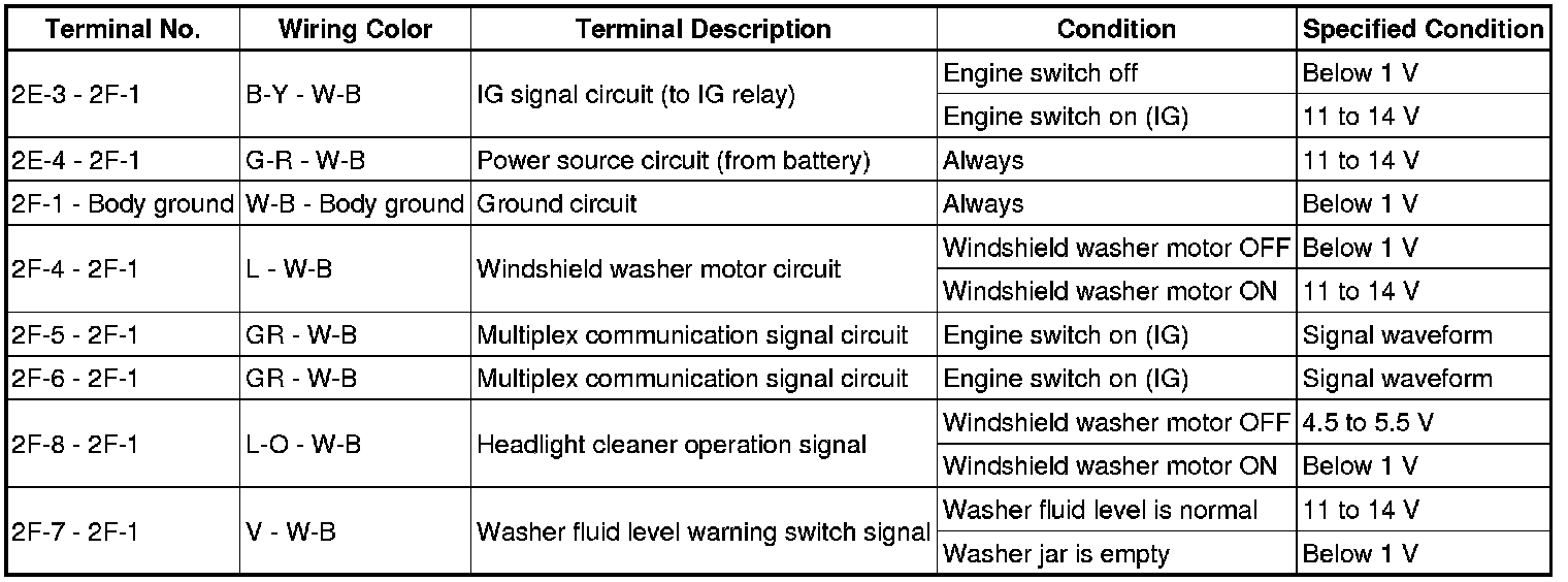 WIPER / WASHER: WIPER AND WASHER SYSTEM: TERMINALS OF ECU