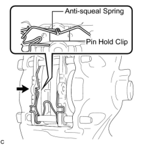 (c) Insert the end of the anti-squeal spring to the brake pad (inner).