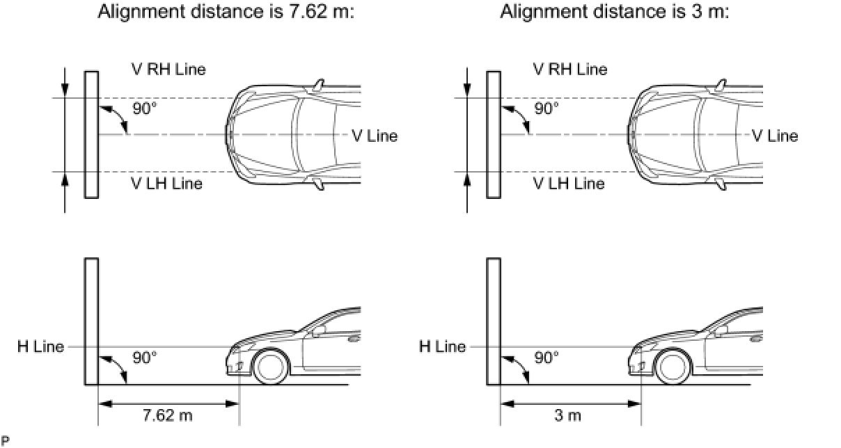* Create a 7.62 m (25 ft.) distance between the vehicle (headlight bulb center) and the wall.