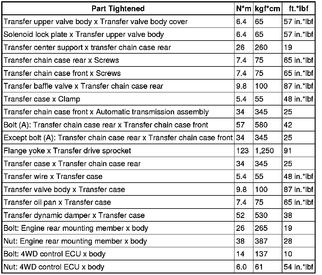 SERVICE SPECIFICATIONS: UF1AE TRANSFER: TORQUE SPECIFICATIONS