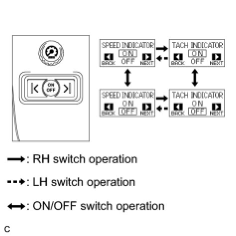 * The speedometer needle moves by 1 degree each time the LH or RH switch is pushed.