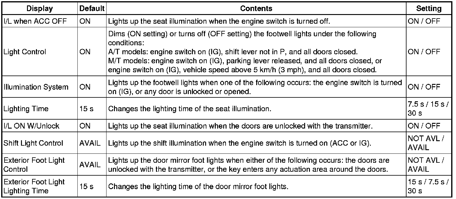 * Driver door unlock default setting: