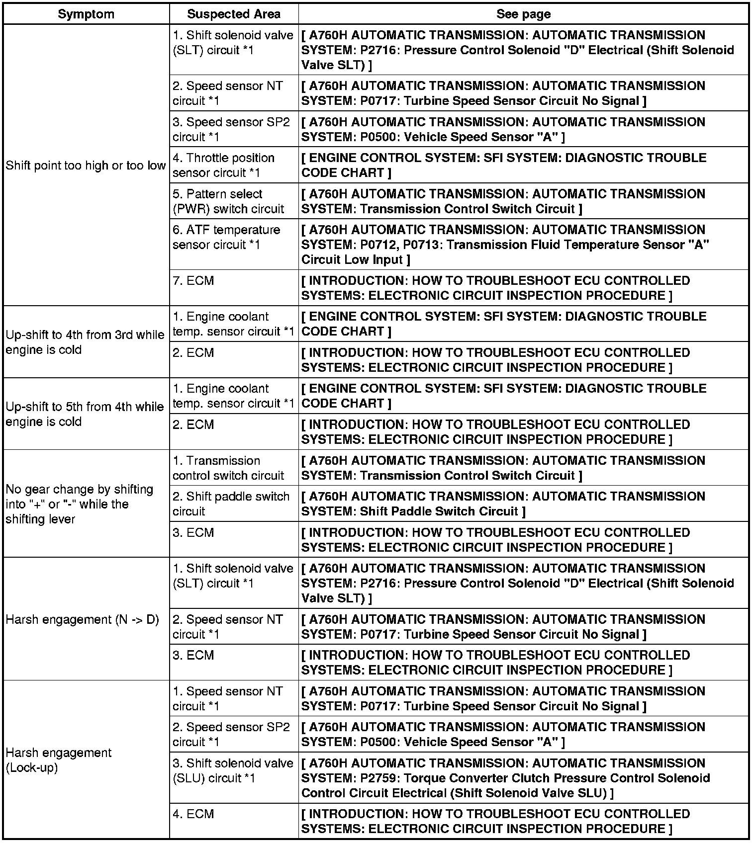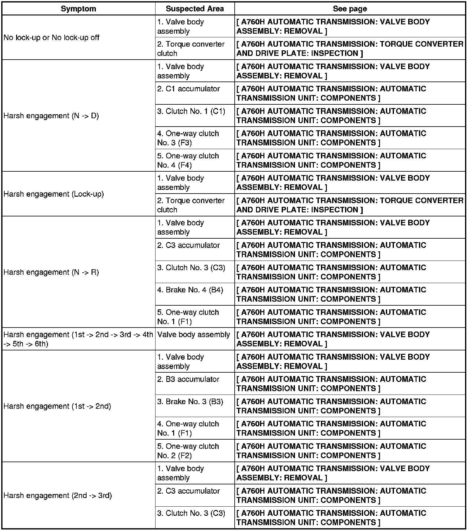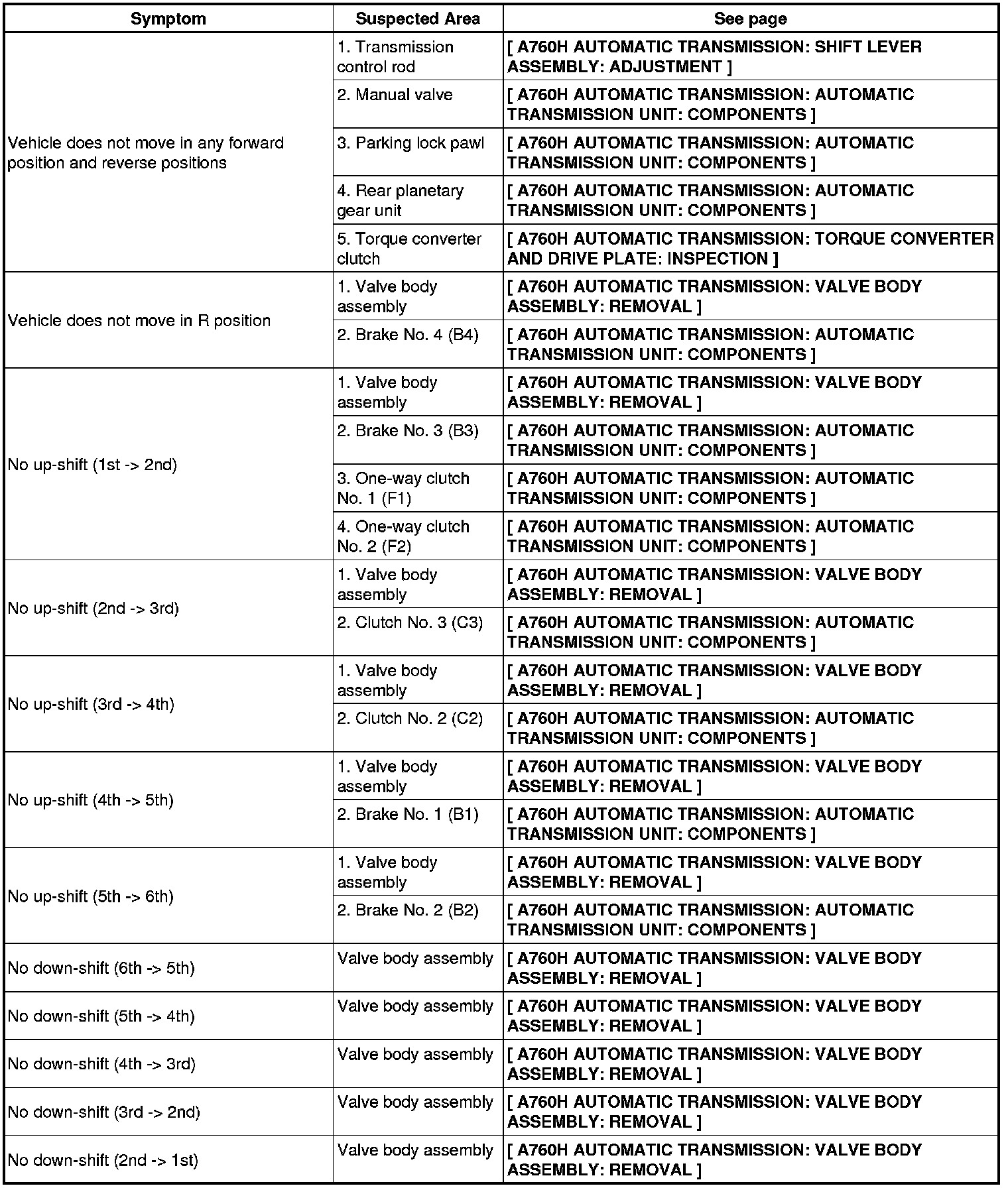 A760H AUTOMATIC TRANSMISSION: AUTOMATIC TRANSMISSION SYSTEM (for 2GR-FSE): PROBLEM SYMPTOMS TABLE