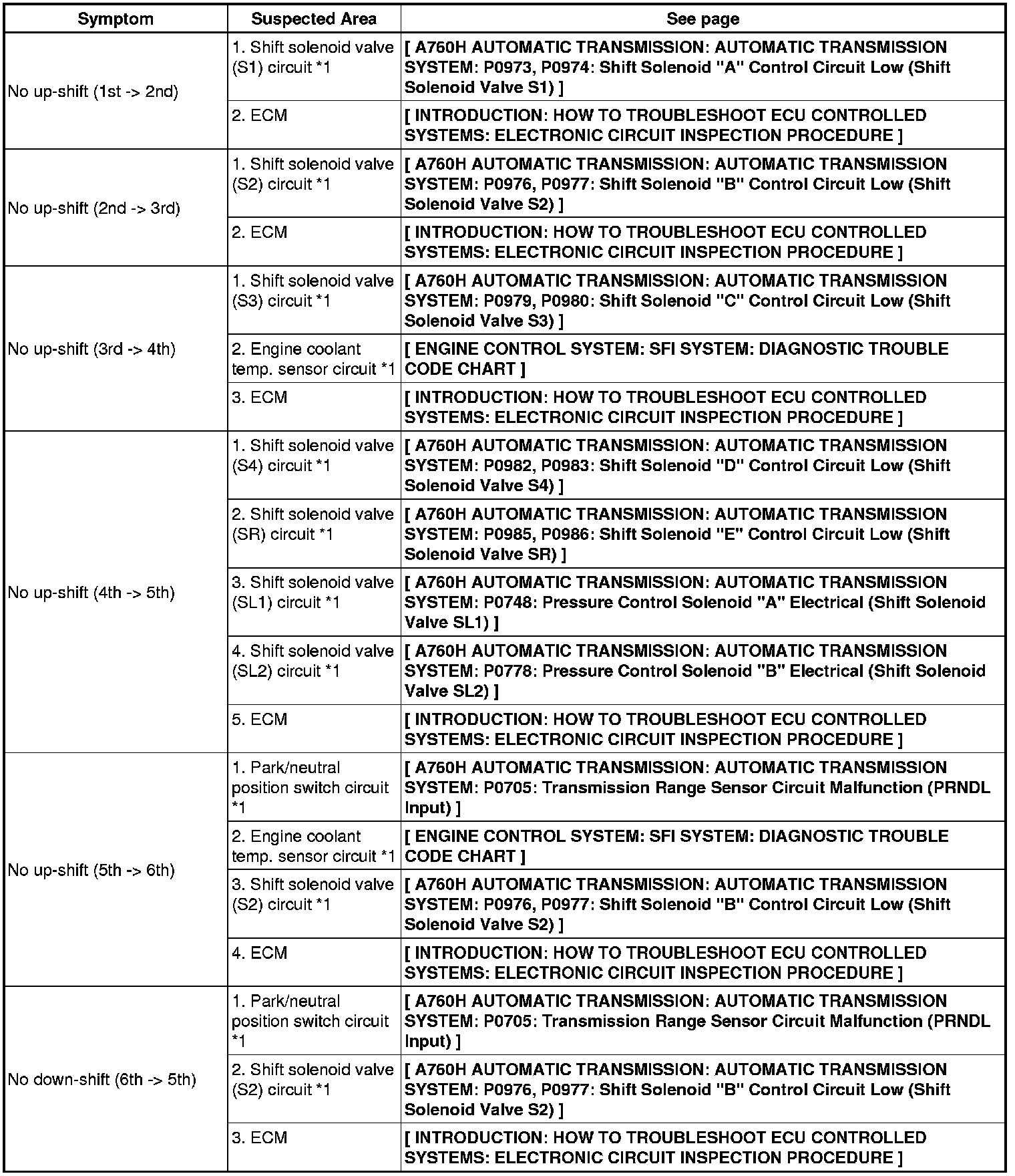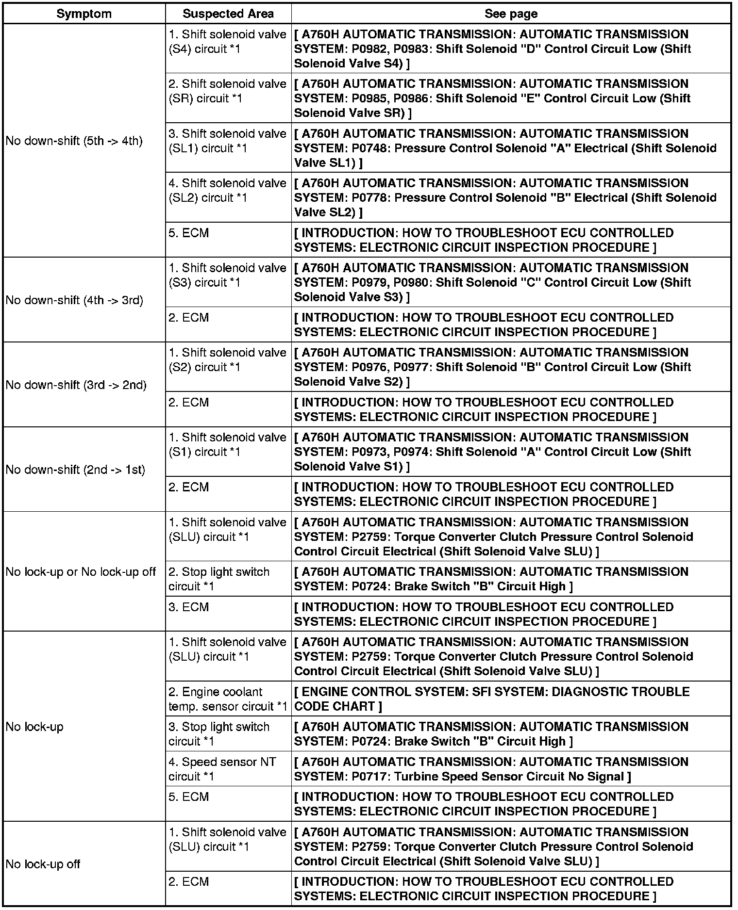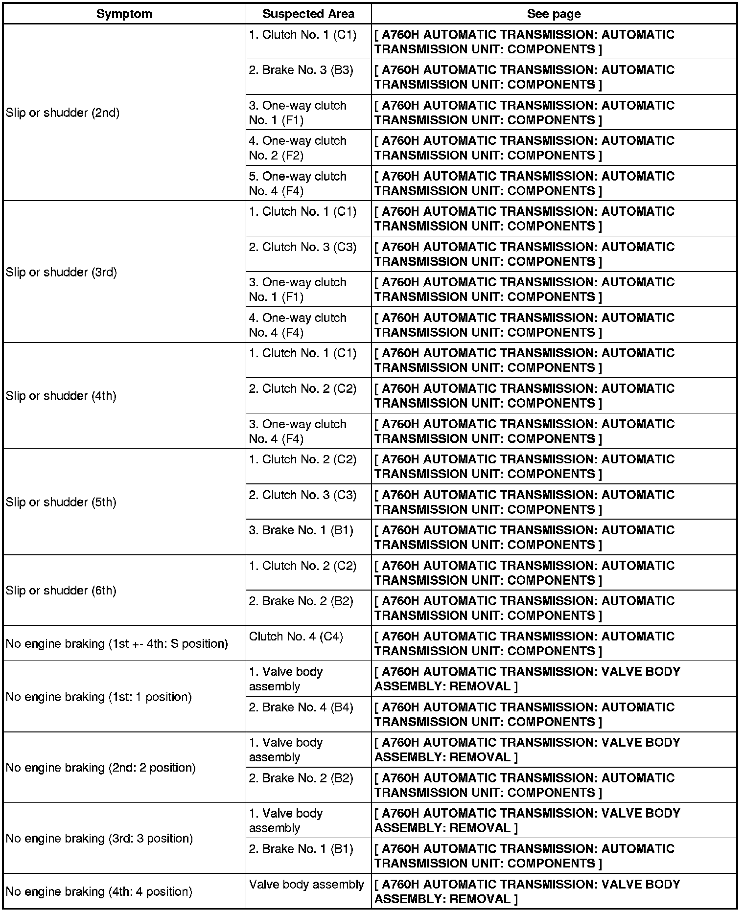 A760H AUTOMATIC TRANSMISSION: AUTOMATIC TRANSMISSION SYSTEM (for 2GR-FSE): PROBLEM SYMPTOMS TABLE