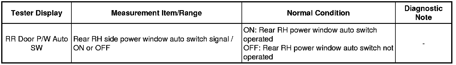- Rear Power Window RH Auto Up / Down Function does not Operate with Rear Power Window Switch RH