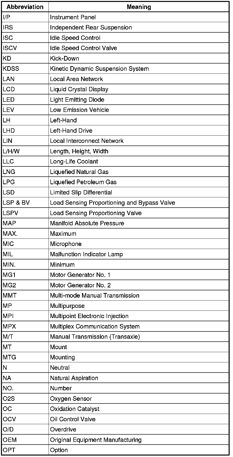 Terms - Abbreviations Used In Service Procedures
