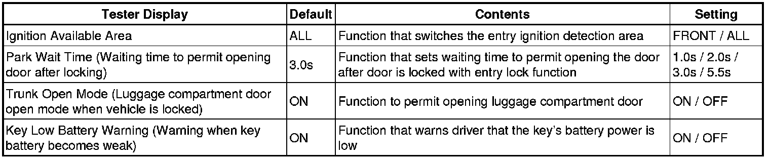 The procedure only changes the entry unlock mode of the smart access system with push-button start. It does not switch the unlocking of the wireless door lock control.