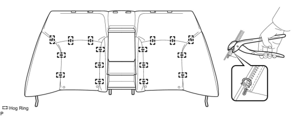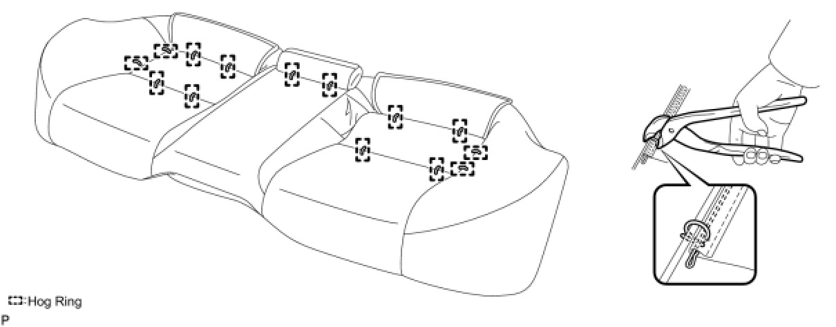 (a) Using hog ring pliers, install the seat cushion cover to the seat cushion frame (with pad) with new hog rings.