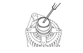 (a) Using a screwdriver, puncture the center of the generator pulley cap and pry it off.