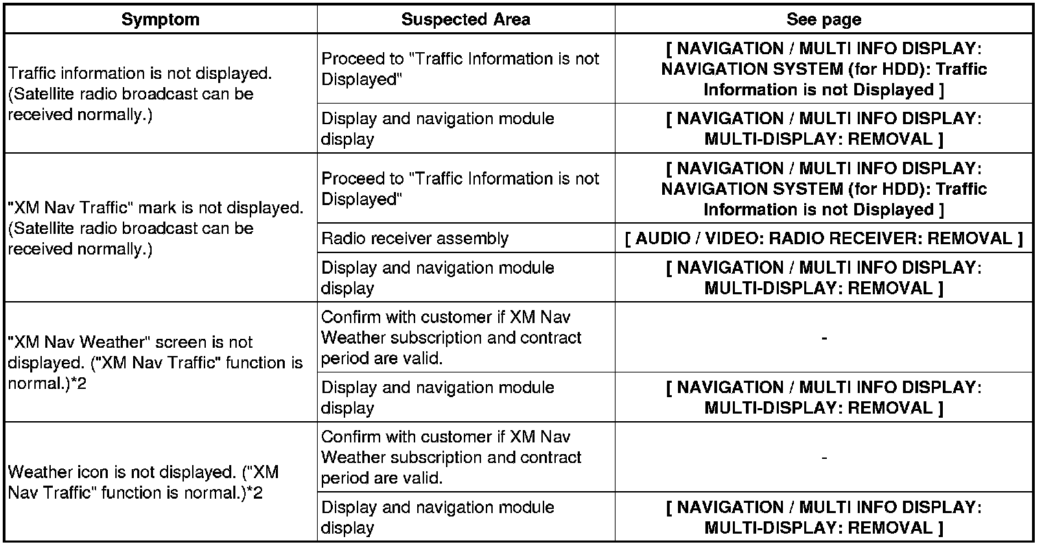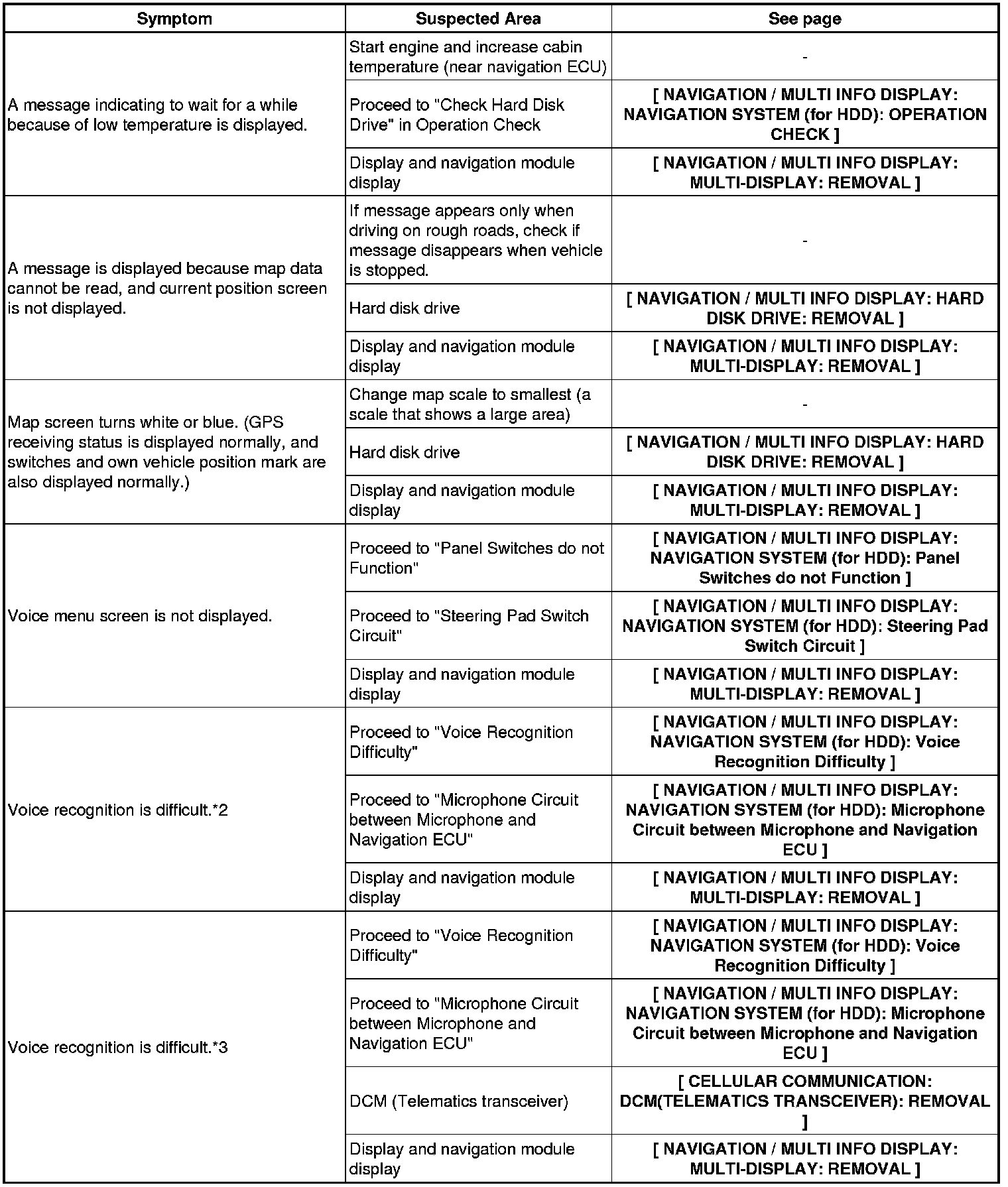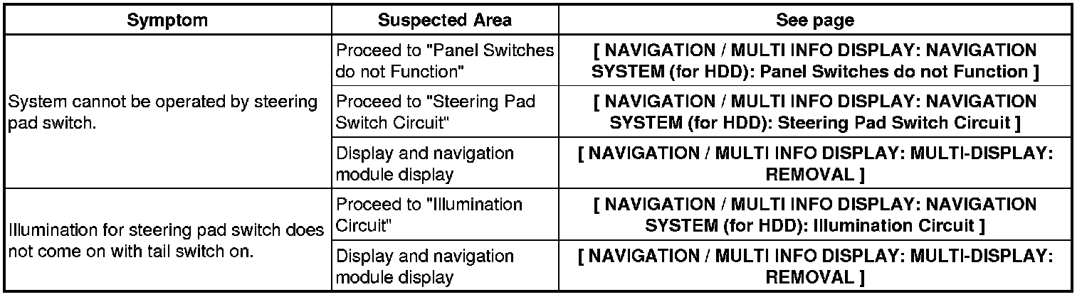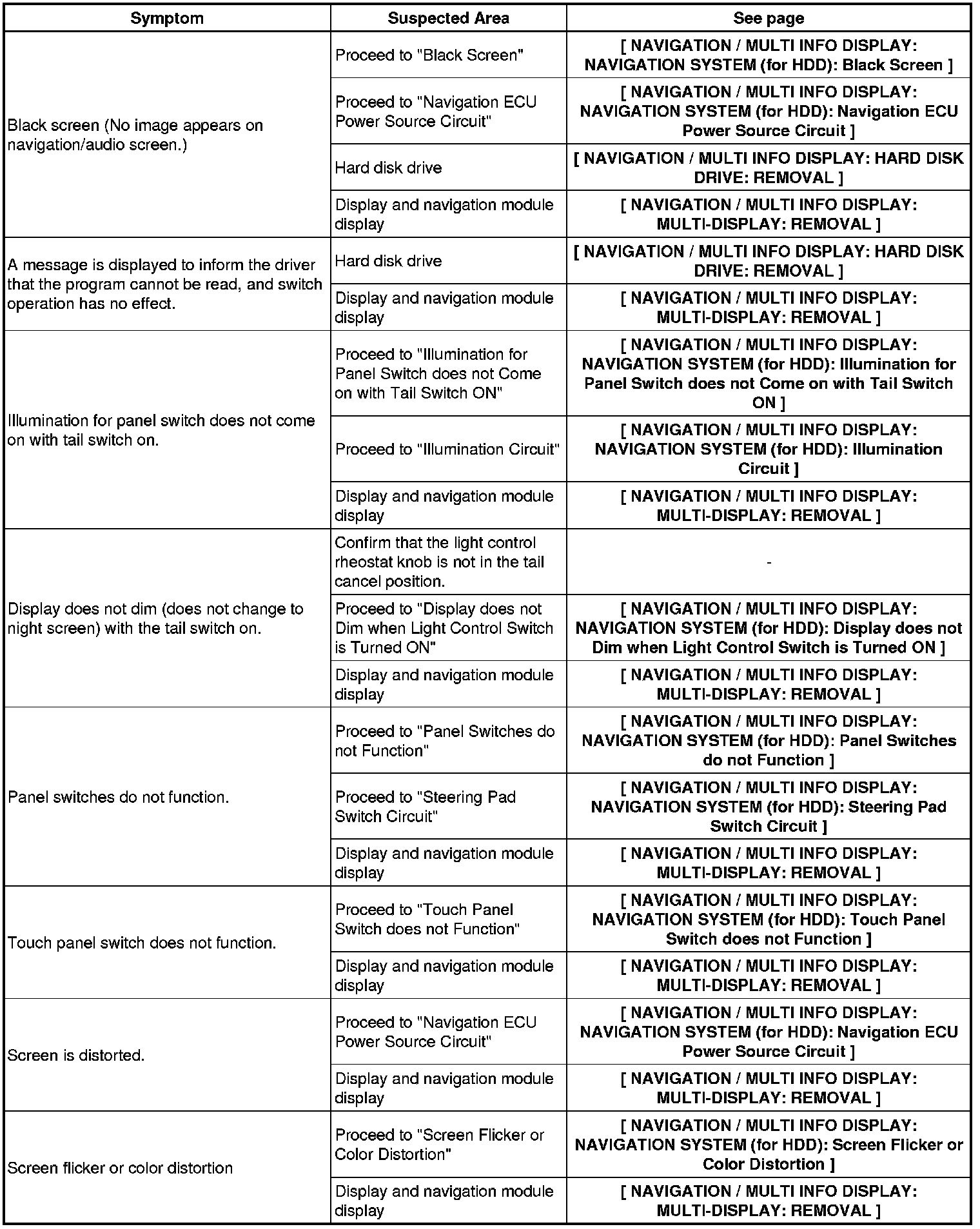 NAVIGATION / MULTI INFO DISPLAY: NAVIGATION SYSTEM (for HDD): PROBLEM SYMPTOMS TABLE