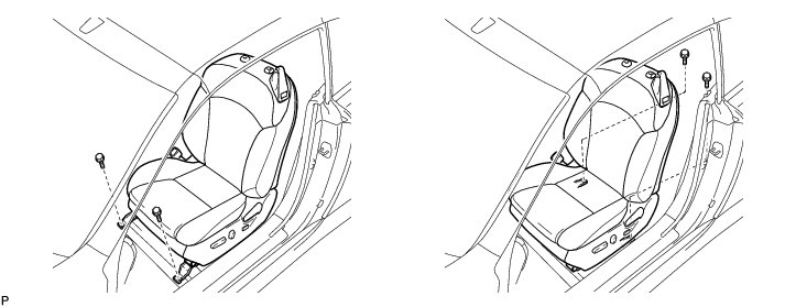 (a) Loosen the 2 bolts on the rear side of the seat.