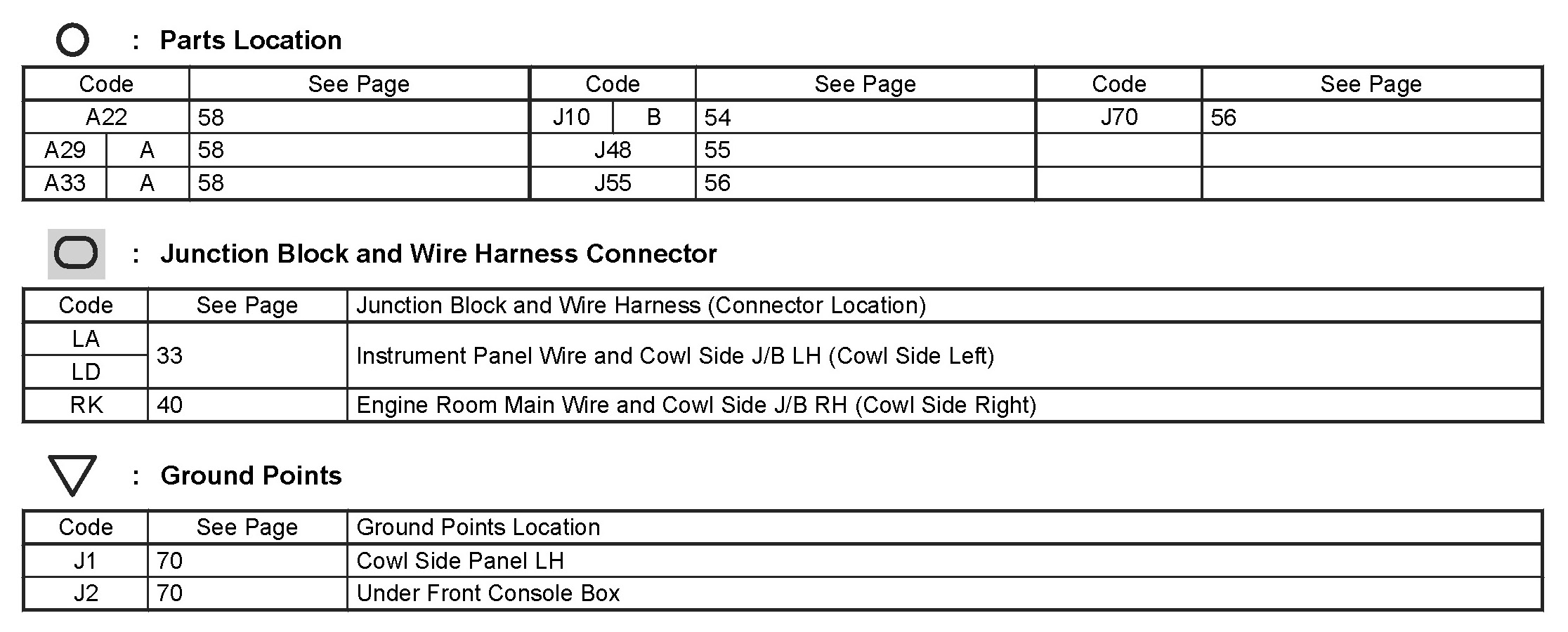 Locations: The locations of components, connectors, ground points, and splices referred to within these diagrams can be found at Vehicle Locations. Component Locations