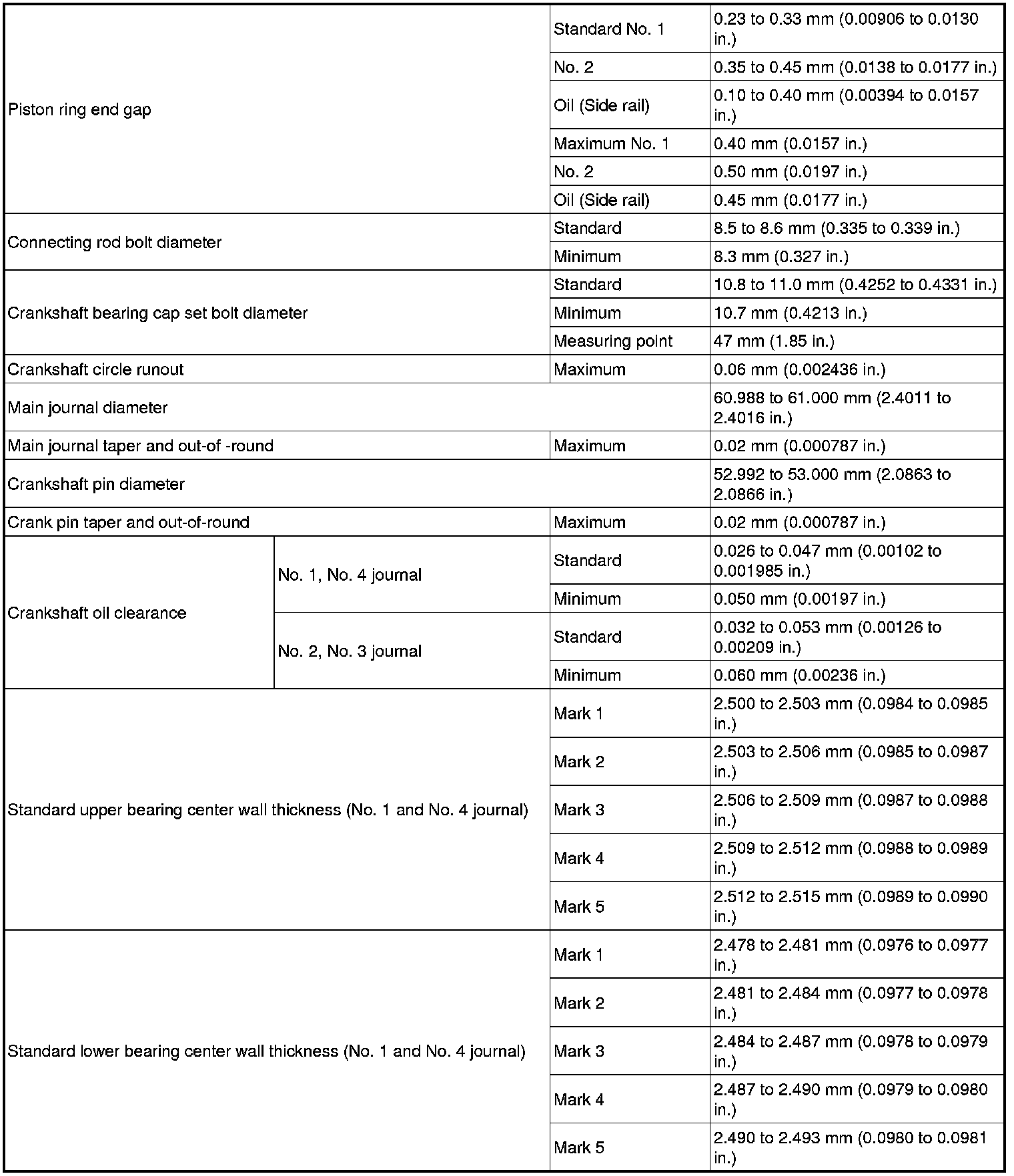 SPECIFICATIONS: 2GR-FSE ENGINE MECHANICAL: SERVICE DATA