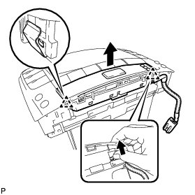 (1) Disengage the 2 clips and remove the clock assembly as shown in the illustration.