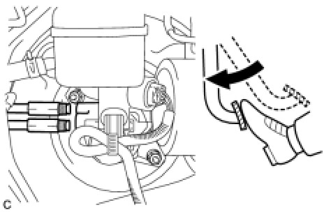 * If the master cylinder is reinstalled or runs out of brake fluid, bleed the master cylinder.
