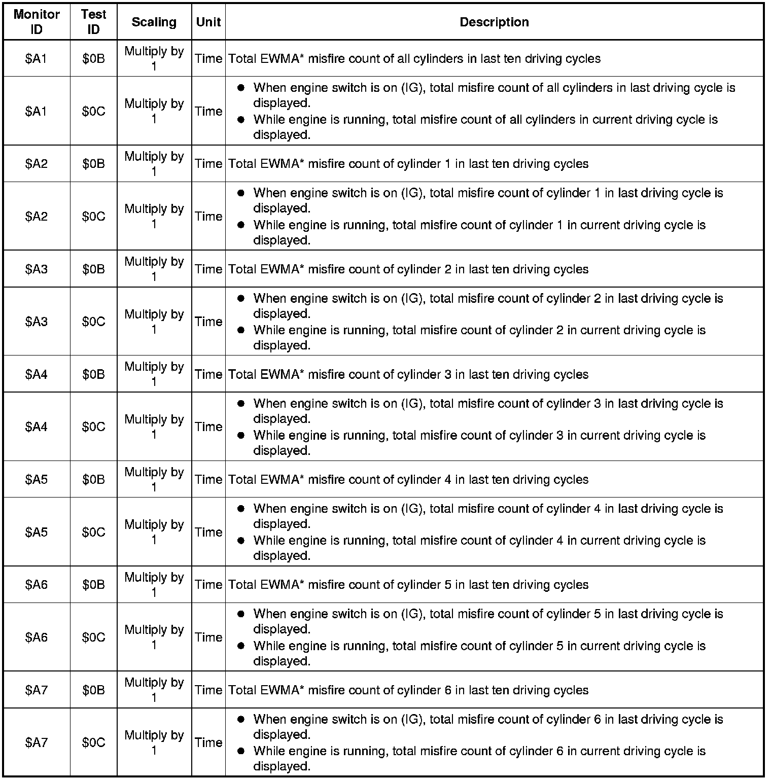 If you use a generic scan tool, multiply the test value by the scaling value listed below.