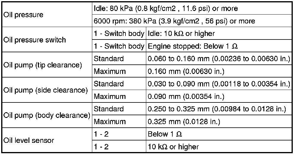 SPECIFICATIONS: 2GR-FSE LUBRICATION: SERVICE DATA