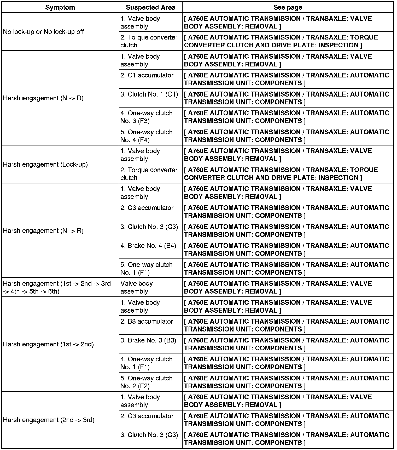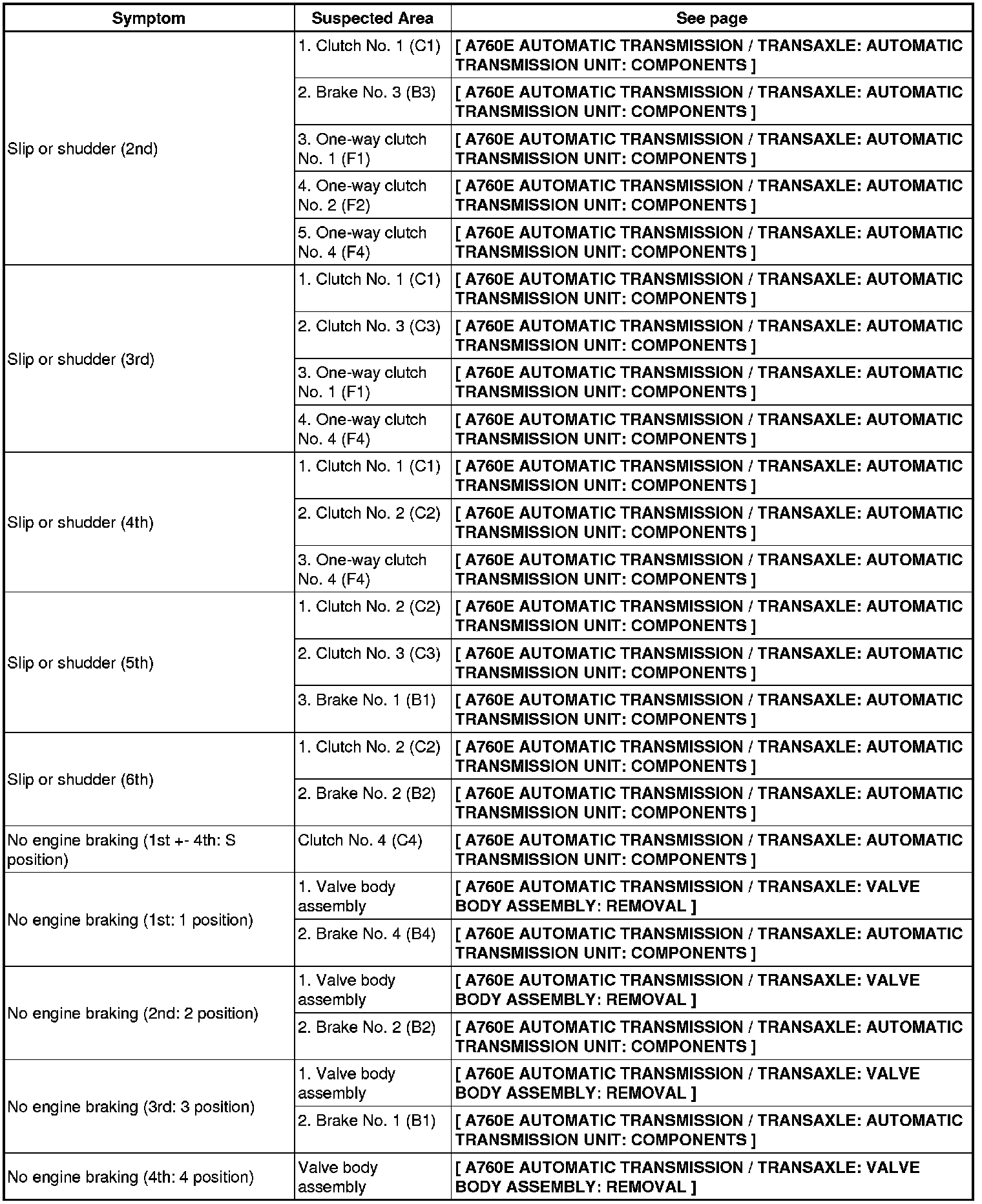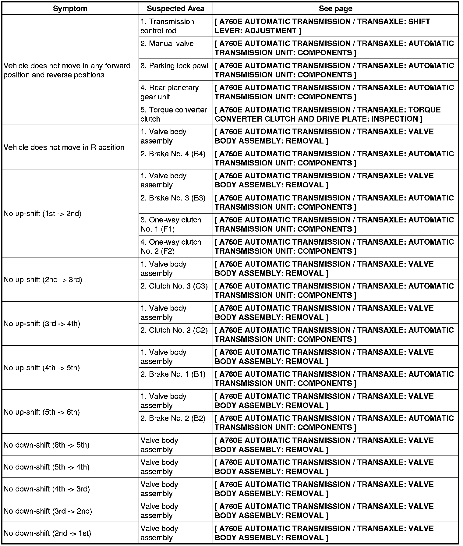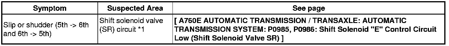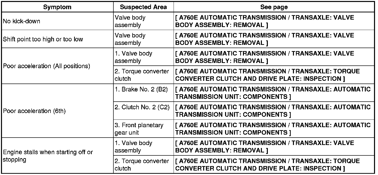 A760E AUTOMATIC TRANSMISSION / TRANSAXLE: AUTOMATIC TRANSMISSION SYSTEM: PROBLEM SYMPTOMS TABLE