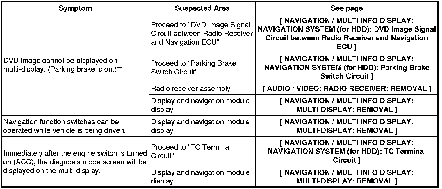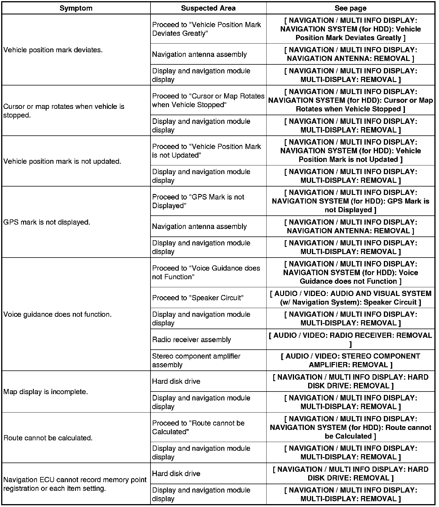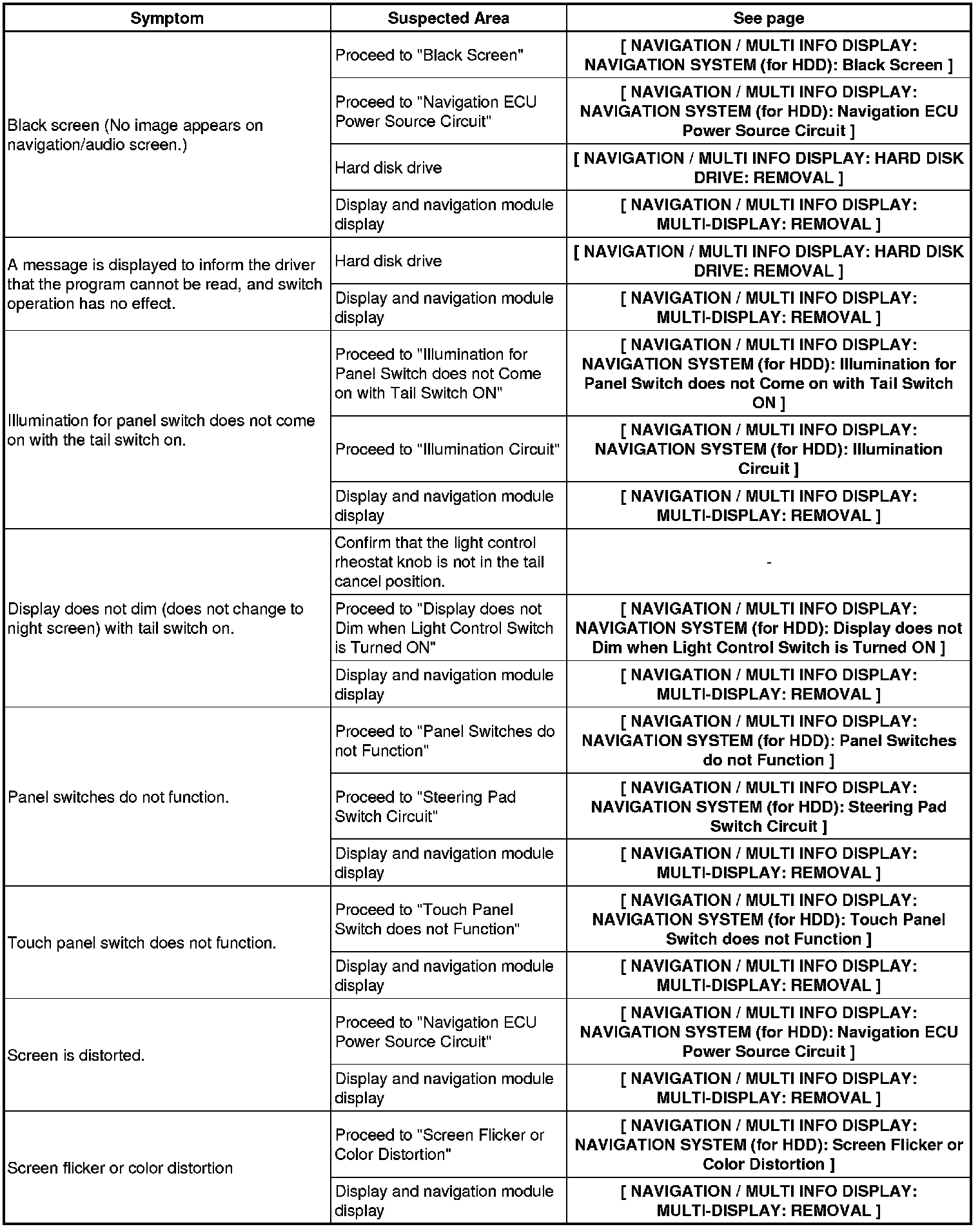 NAVIGATION / MULTI INFO DISPLAY: NAVIGATION SYSTEM (for HDD): PROBLEM SYMPTOMS TABLE