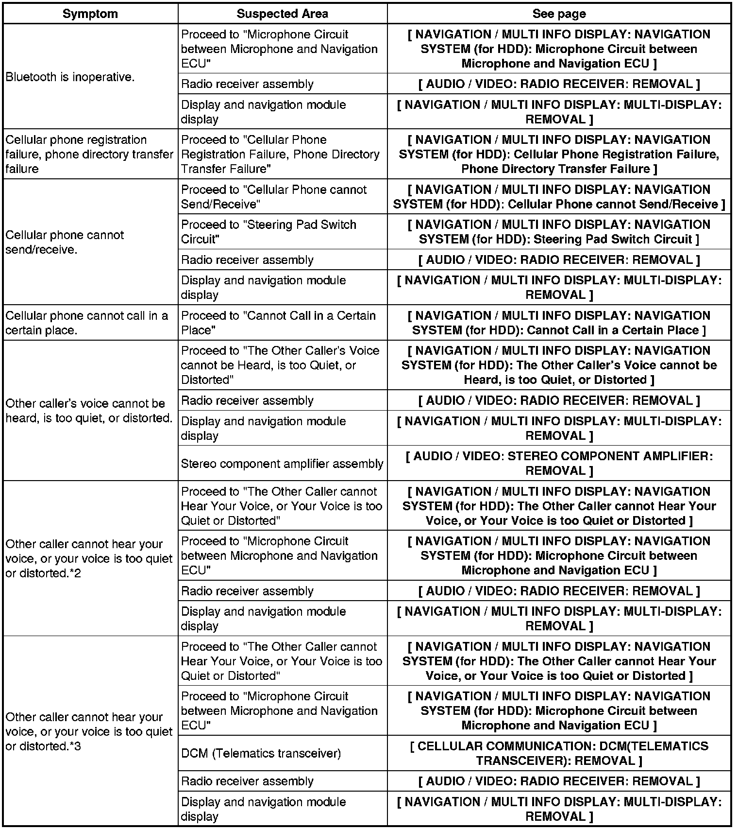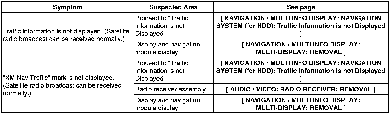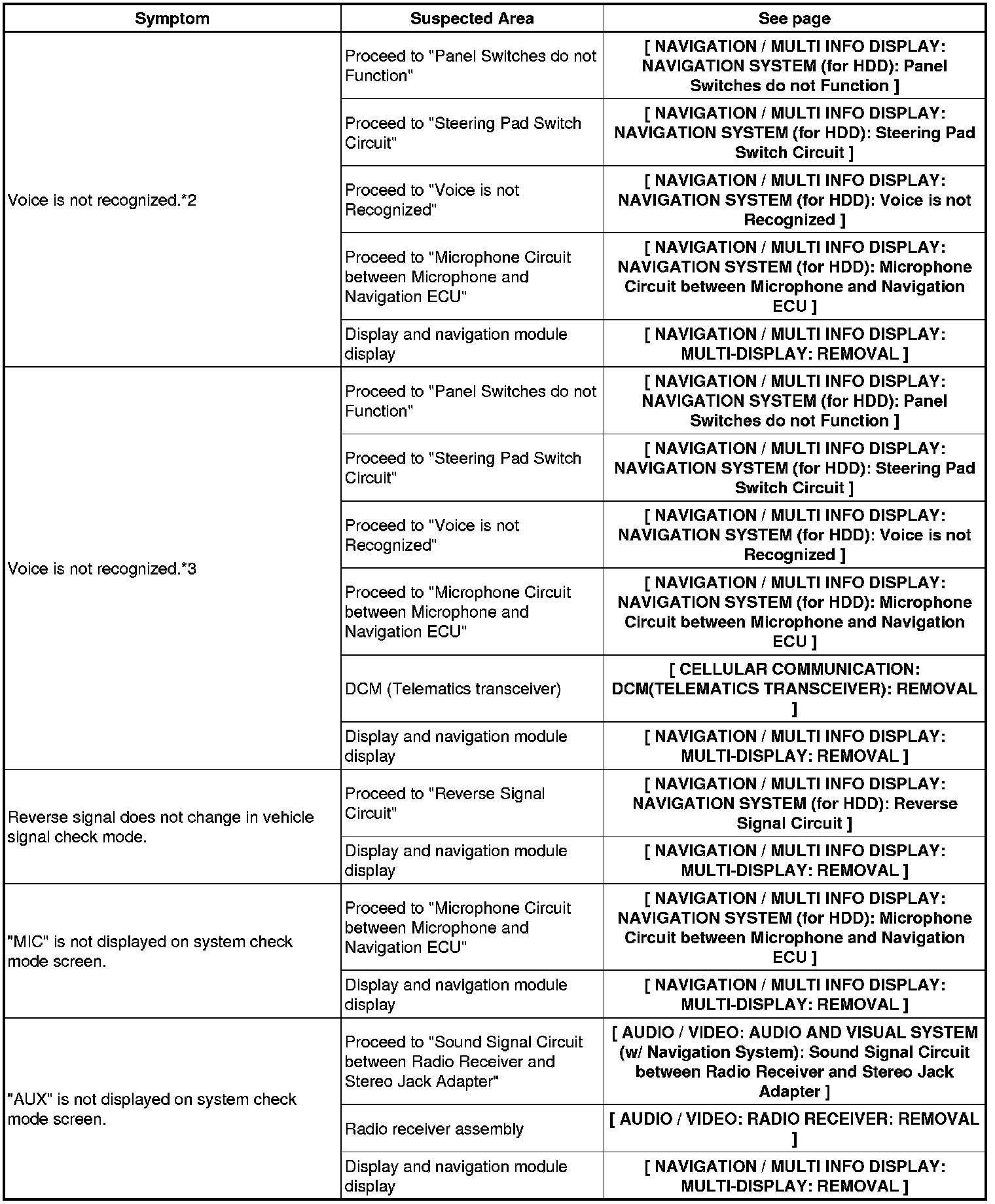 NAVIGATION / MULTI INFO DISPLAY: NAVIGATION SYSTEM (for HDD): PROBLEM SYMPTOMS TABLE