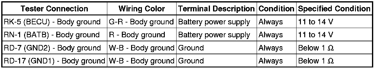 If the result is not as specified, there may be a malfunction in the wire harness.