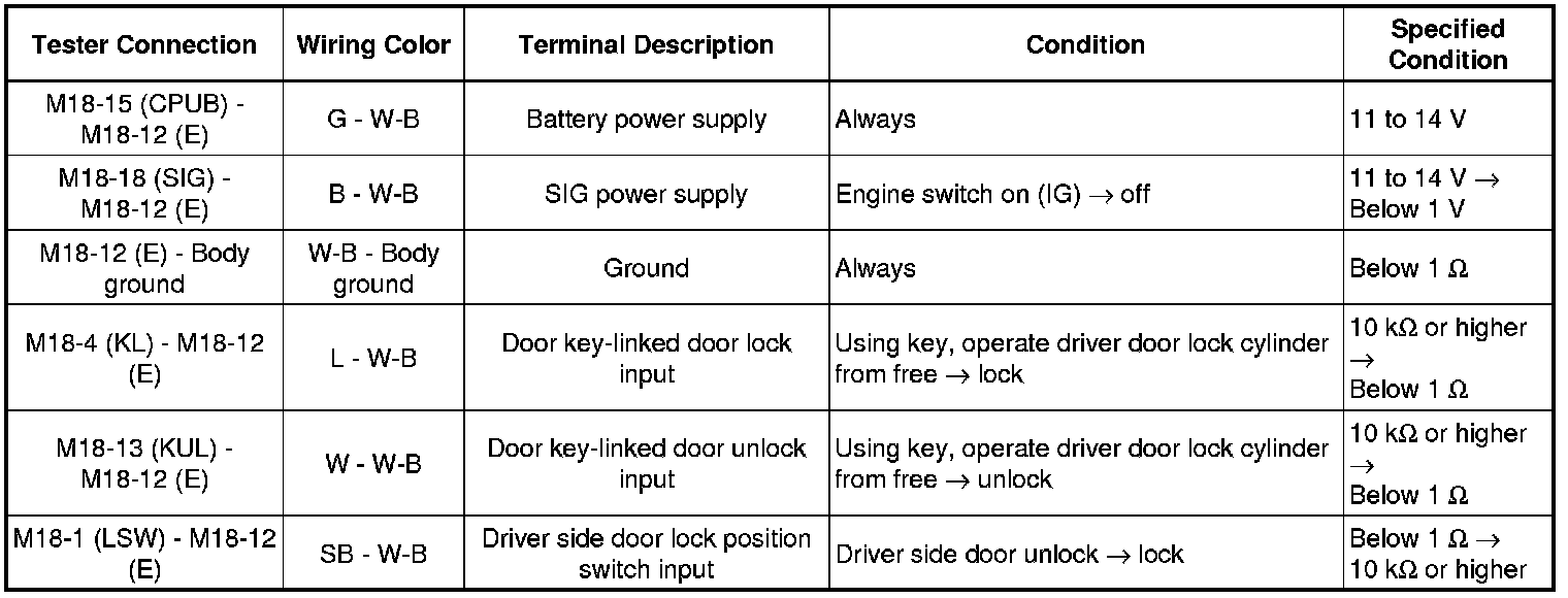 DOOR LOCK: POWER DOOR LOCK CONTROL SYSTEM: TERMINALS OF ECU
