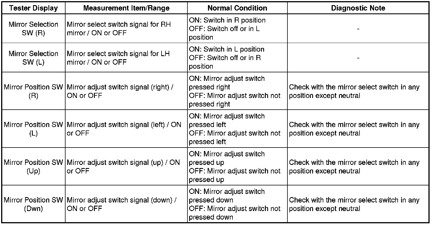 - Power Mirror cannot be Adjusted with Power Mirror Switch