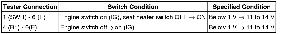 SEAT: SEAT HEATER CONTROL: INSPECTION