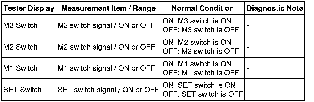 On the Techstream screen, each item changes between ON and OFF according to the above chart.