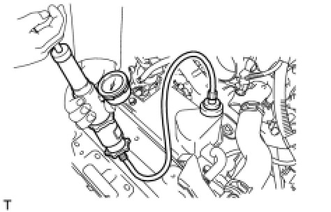 (c) Using the radiator cap tester, increase the pressure inside the radiator to 118 kPa (1.2 kgf/cm2, 17 psi), and check that the pressure does not drop.