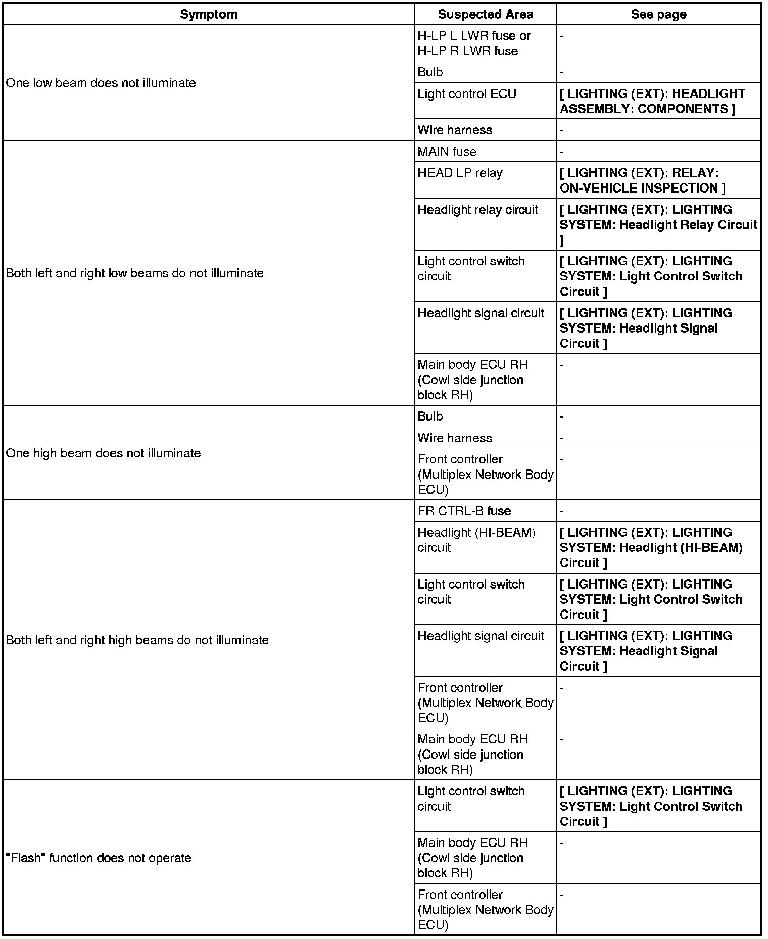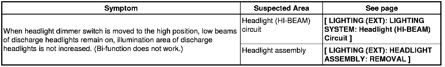 LIGHTING (EXT): LIGHTING SYSTEM: PROBLEM SYMPTOMS TABLE