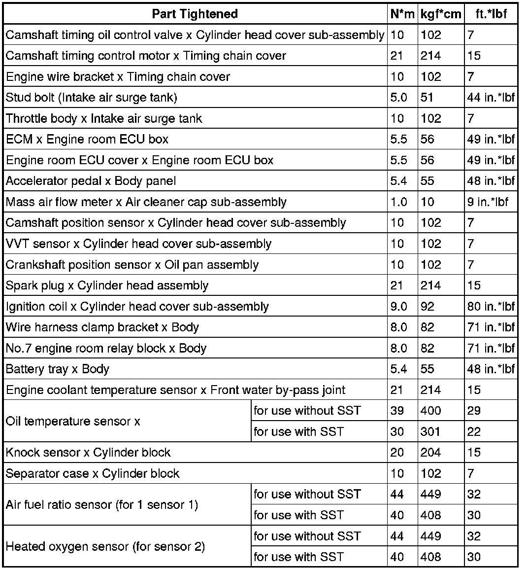SPECIFICATIONS: 2UR-GSE ENGINE CONTROL: TORQUE SPECIFICATIONS