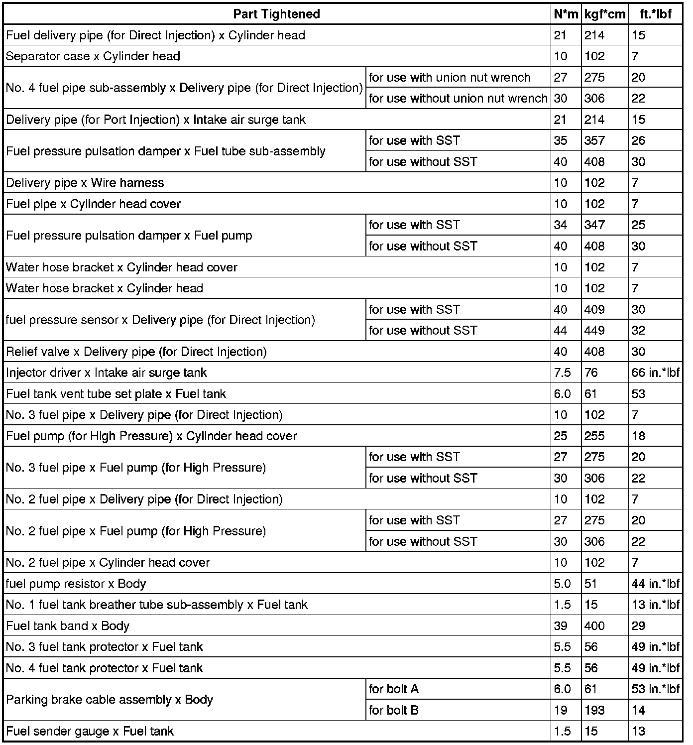 SPECIFICATIONS: 2UR-GSE FUEL: TORQUE SPECIFICATIONS