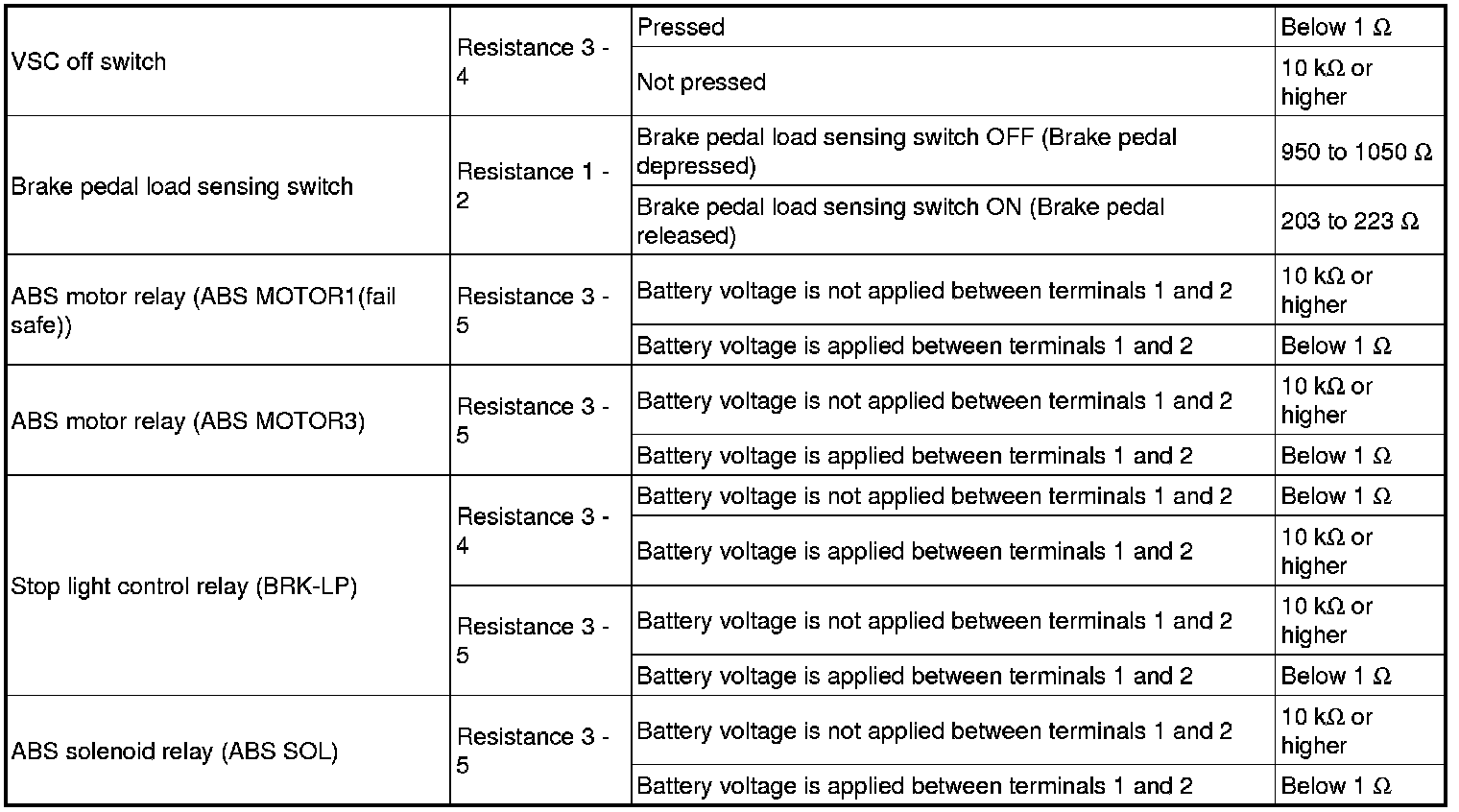 SPECIFICATIONS: BRAKE CONTROL / DYNAMIC CONTROL SYSTEMS: SERVICE DATA